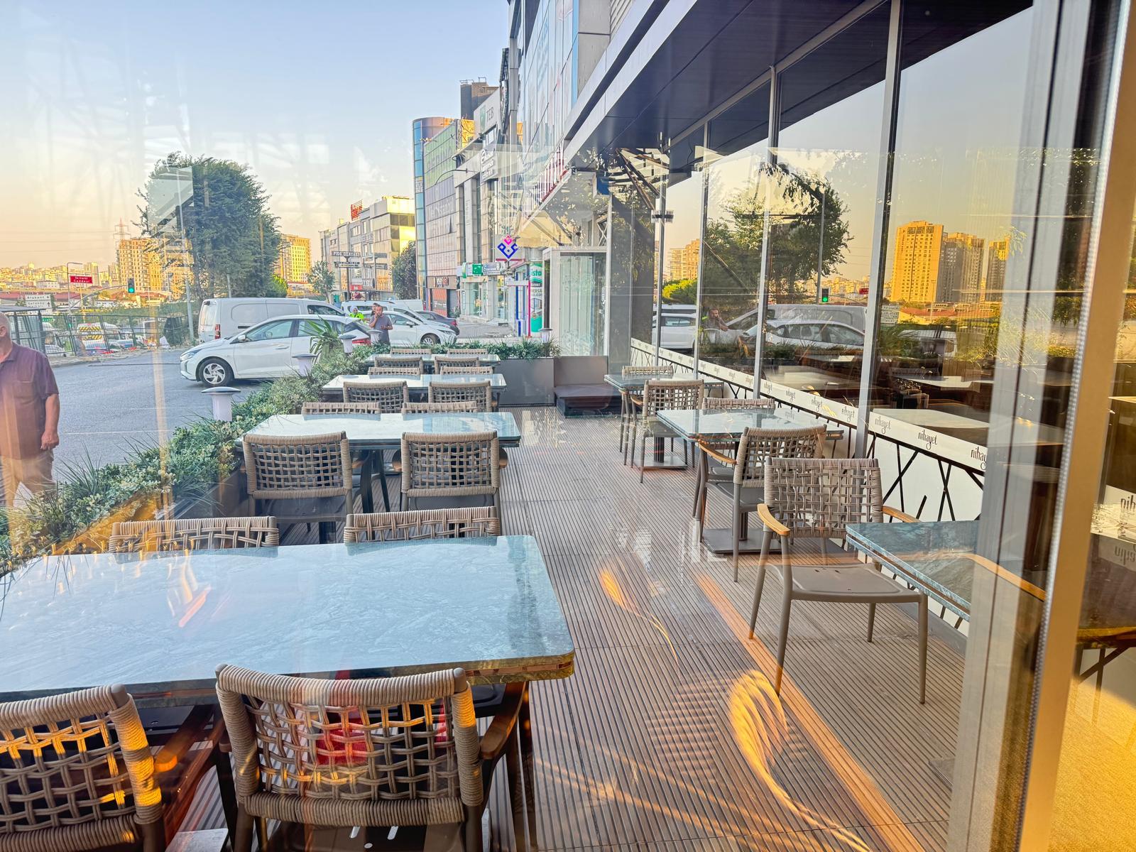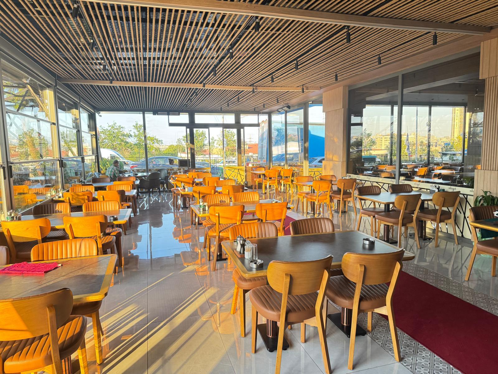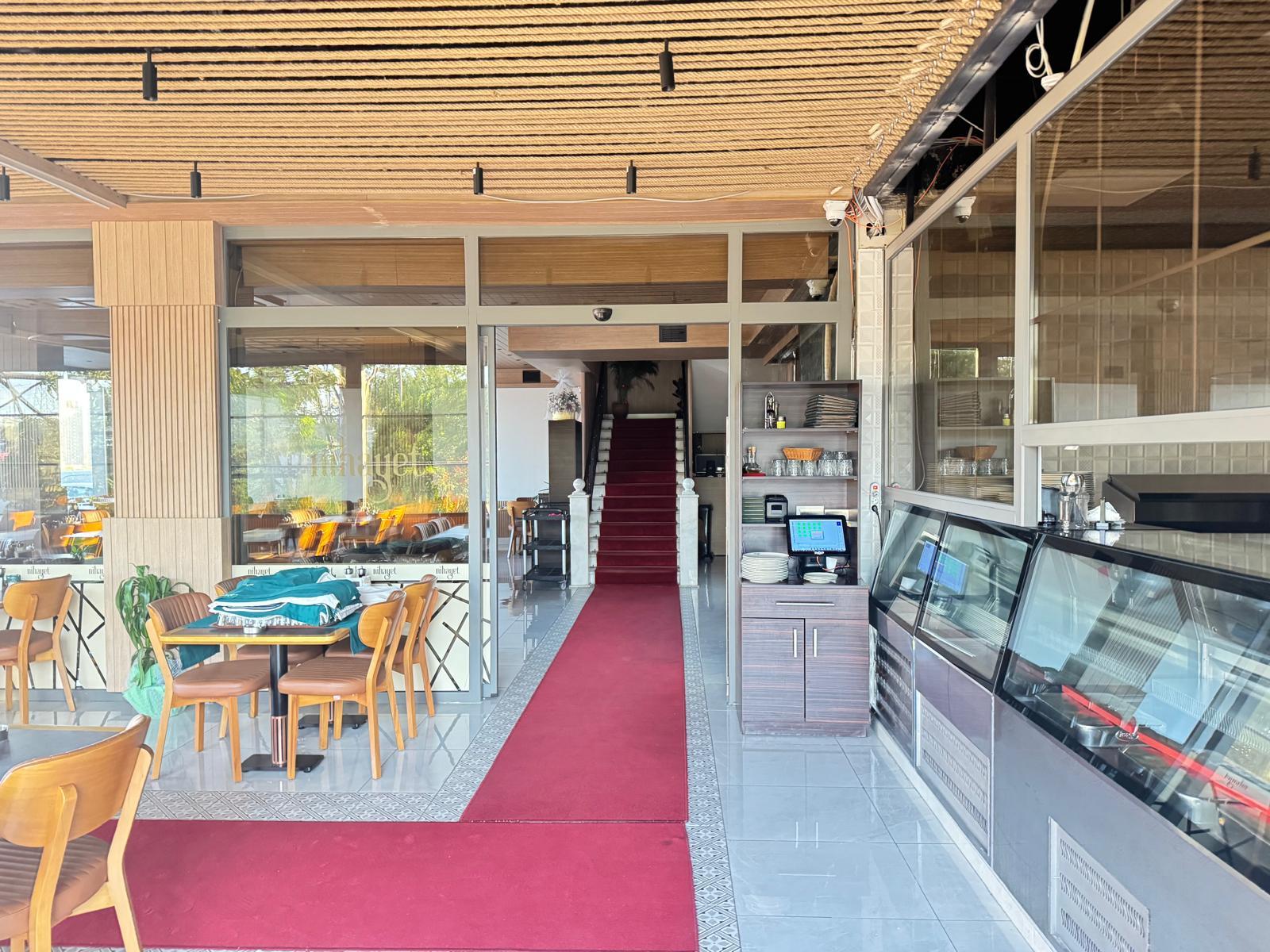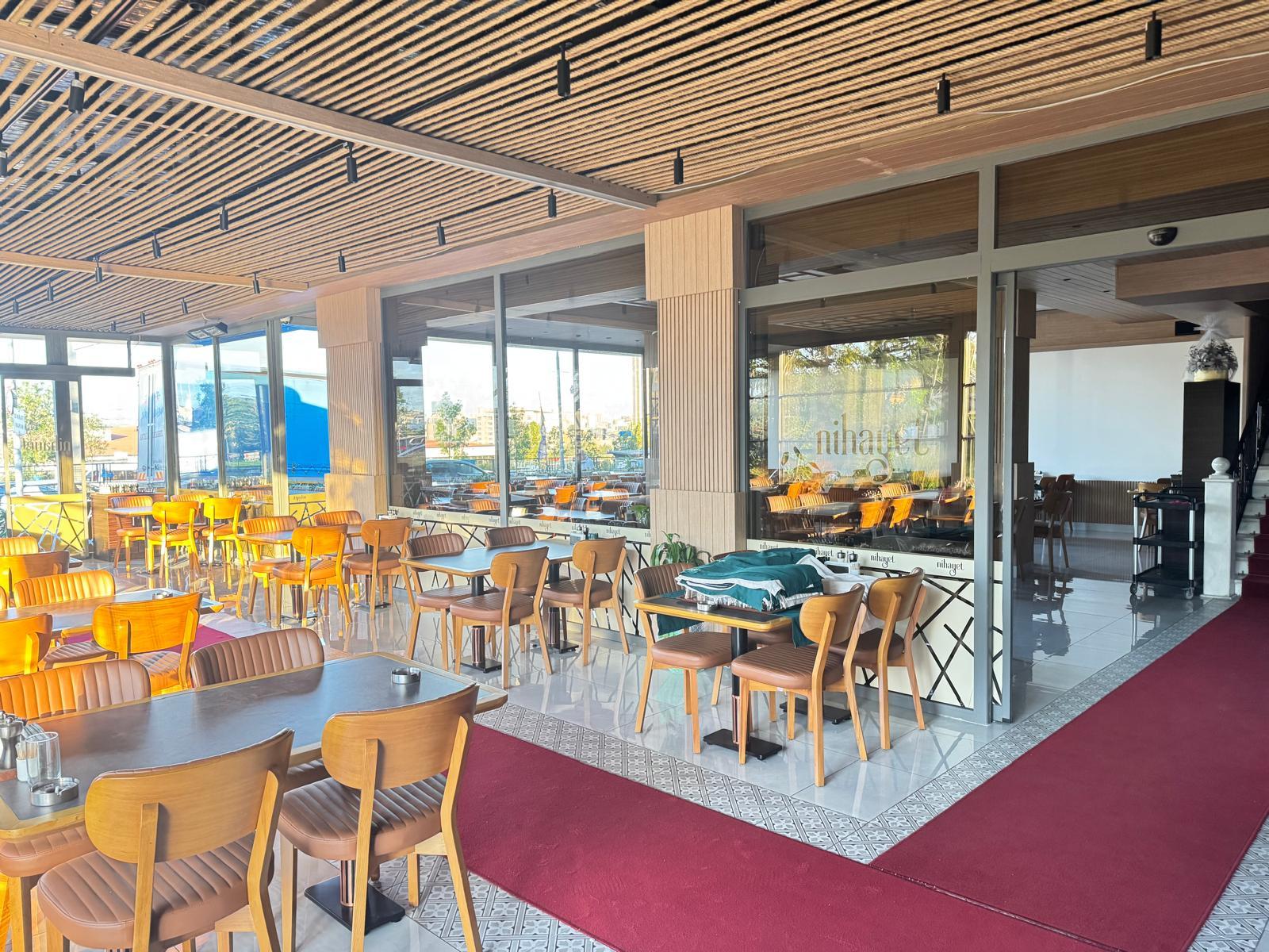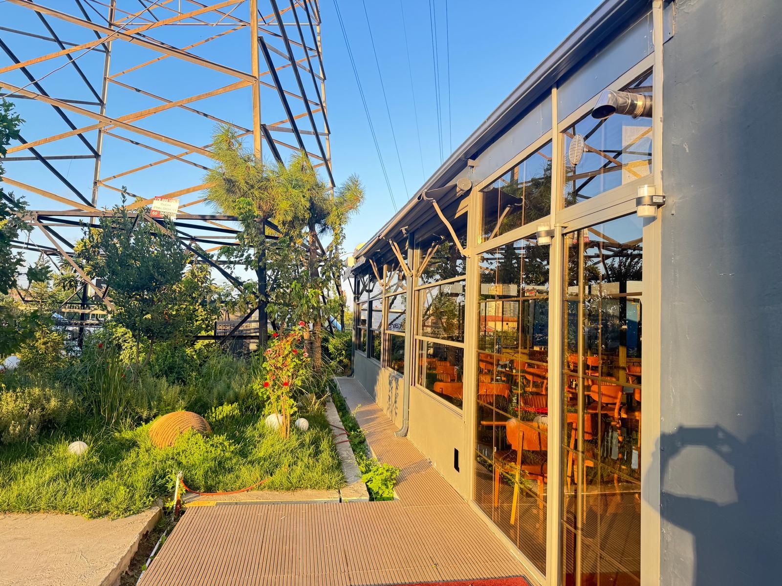 2-150 metre kare kapalı bahçesi 3 tarafı giotin ve sürgülü camlar 130 kişilik 3-40 metre kare açık bahçesi 24 kişilik
